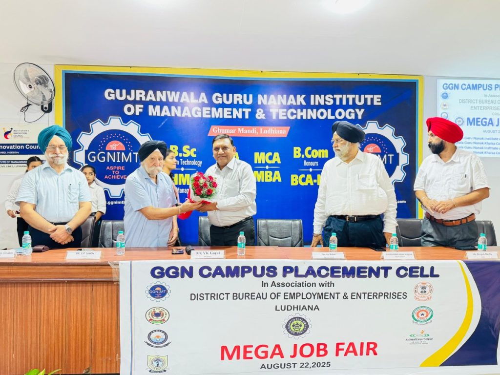 Ludhiana, August 22: GGN Campus Placement Cell, in collaboration with the District Bureau of Employment & Enterprises (DBEE), Ludhiana, organized a Mega Job Fair that witnessed an overwhelming response from students and industry alike.